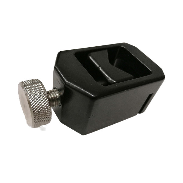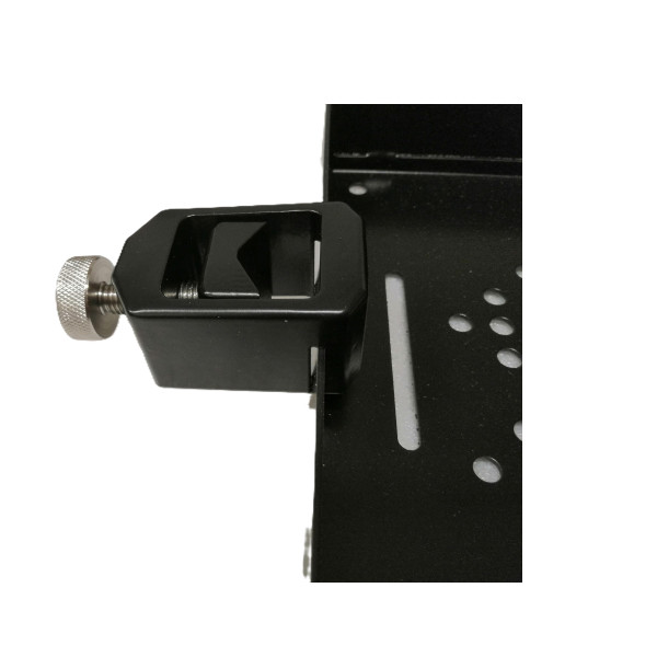 Sliding tray adapter for attaching accessories. Made of aluminium and stainless steel. Powder coated.